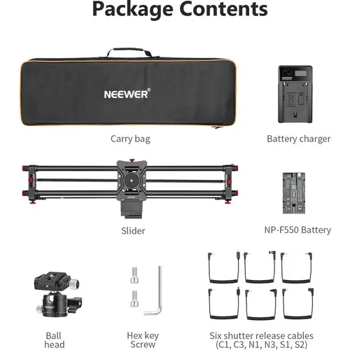 اسلایدر دوربین NEEWER ER1-100cm Motorized Carbon Fiber Camera Slider یک همراه عالی برای عکاسی و فیلمبرداری است. این اسلابدر از ترکیبی از مواد درجه یک، از جمله فیبر کربن و آلیاژ آلومینیوم ساخته شده است.